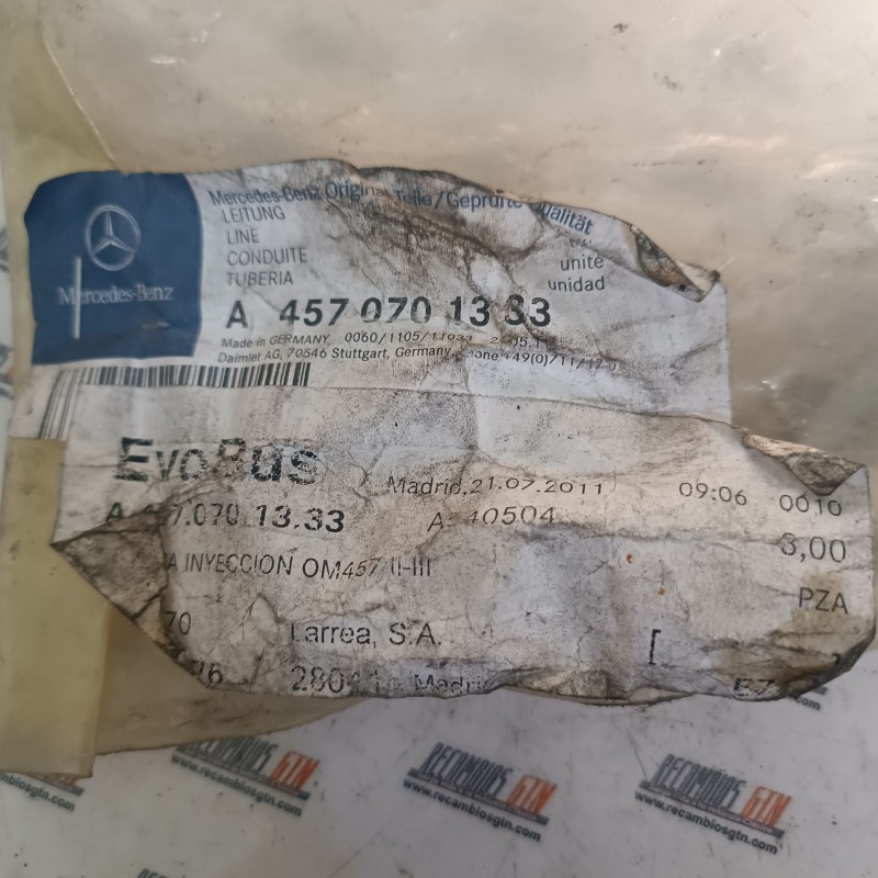 Tubería alta presión, sistema inyección para MERCEDES-BENZ. Original Mercedes referencia A4570701333. Nuevo de antiguo stock.